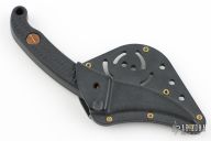 The Kydex sheath is cant adjustable and can be carried in a horizontal or vertical position. The standoff spacers allow for the clip to be mounted on either side of the sheath allowing carry for left or right hand. The Tracker Dan clip is included but not installed on the sheath to allow the user to set up carry how they prefer.