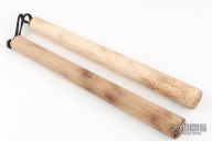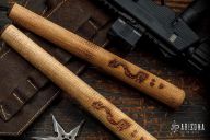 Every kid that was watching action cartoons, consuming cyberpunk and anime, binging cheeseball action flicks, or just haunting the local knife and gun stores can tell you everything they dreamed about was: a katana, a subcompact SMG of some kind, nunchucks, a badass motorcycle, and shurikens. It's funny how looking back, some things never change… Straight from Ryan's personal shop, the Gold Point Nunchucks are perfect for all your bashin' and general ass whoopin' needs! Ryan built these nunchucks at the Gold Point Forge on his Defiance 1904 lathe. These chucks can be easily thrown in a pack, or back pocket for whenever you need some extra leverage. Each is solid chunk of Tennessee hickory, that has been tapered up the handle (featuring the signature texture that the Defiance lathe is known for). These nunchucks feature an engraved Valhalla Dragon on one of the handles and have been given a slightly flamed natural finish.