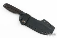 This Fixed bade by Jason Stout features a stonewashed clip point blade with false top edge, fuller, .239" blade stock and 1.491" blade depth, full tang construction. The handle has dyed black micarta scales with lanyard hole in pommel. Comes with a kydex sheath. Has a couple light scuffs, excellent condition otherwise.