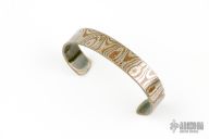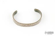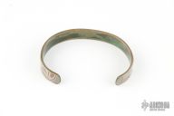 This bracelet has a 1 3/8" opening and is 2 1/2" accross. For a small size wrist. Has some scratches, otherwise good condition.