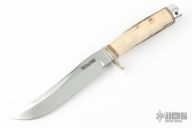 This model 3-6 from Randall Made Knives has an upswept satin finished blade with .222" blade stock and 1.204" blade depth, hidden tang construction. The handle is comprised of a nickel silver guard, stag grip with finger grooves, lanyard hole in the duralumin butt and spacers. Has some scuffs, patina, and some spotting on the blade. Great condition otherwise.