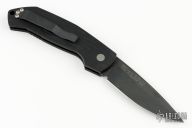 The Magic Auto by Pro-Tech Knives is a Mike "Whiskers" Allen design. Coil spring side-opening scale release automatic. It has a black blade and black aluminum handle with tip up black stainless steel clip. Has some scuffs and scratches, has some wear on the blade finish, otherwise good condition. FPR #103