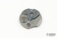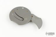 This Production Coin Claw Folder by Serge Panchenko features a stonewashed chisel ground hawkbill blade with a thumbstud. The handle is stonewashed titanium with blue titanium overlay. Comes with ball chain. Has a detent to hold the blade in position open/closed, but it does not lock. Excellent condition. Comes with original box and papers.