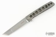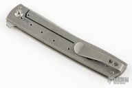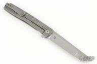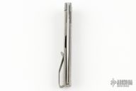 This Urban Trapper is a Brad Zinker Design executed by Boker. It features a hand rub satin finished blade with swedge and flipper. The handle is comprised of tumble finished and skeletonized titanium over a single stand off. Tumbled titanium deep carry pocket clip. Excellent Condition. Comes with original box and papers.