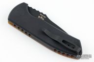 The Protech Knives SBR (Short Bladed Rockeye) is a utilitarian, compact, every-day-carry version of the Les George iconic Rockeye model, retaining the classic design in a smaller package. The SBR has the same American innovations as the Rockeye, featuring modern materials, high tech manufacturing, advanced coil spring mechanism, and quality American production. This version of the SBR has a DLC Black finished stainless plain edge blade, black anodized aluminum and Ultem handles and black hardware. Comes with original box and papers. Excellent condition.