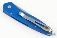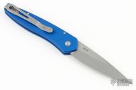 This Newport by Protech Knives features a stonewashed spearpoint blade and blue aluminum handle with tip up stainless steel clip. Comes with original box and papers. Excellent condition.