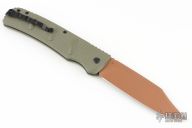 This Blade HQ Exclusive Boker Desert Warrior XXL Kalashnikov features a copper D2 blade and a OD green handle.