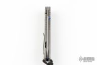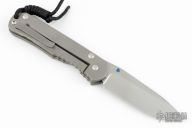 This large Regular Sebenza by Chris Reeve Knives features a tumble finish blade and bead blast titanium frame. Anodized titanium thumb stud and barrel spacer. Lanyard hole in pommel. Nice detent, lockup and blade seating. Includes the original box and papers.  Dated March 26, 1997.  Has a few light scuffs otherwise the knife is in excellent conditon.
