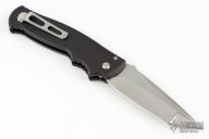 This M2 Automatic pre-production (1 of 50) by Walter Brend features a tanto polished satin hand-ground blade. Black aluminum frame with non-slip inserts and a stainless tip up carry clip. Original box and COA. Comes with Maxpedition case. Excellent condition.