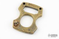 This Cypop from Tactical Knife Invitational features is a .25" thick "Darkness" Cypop with Steel Flame skull and Greg Stevens Design leather cypop coozie. Leather coozie is marked TKI. Cypop has "Steel Flame", "Tactical Knife Invitational" and the three "TKI Skulls" engraved into the "B" side of the Cypop. Limited run of 100. Excellent condition.