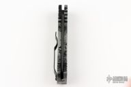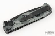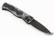 This TR-2 Skull Surprise P.K. Splash Custom Edition Auto has a black finished 154-CM spear/ drop point blade. Handle is custom splash anodized alumium by Peter Kellett, meaning each piece is a true one-of-a-kind custom. Shaw designed sterling silver skull inset, black lip pearl auto button, and black finished stainless steel tip up clip. Excellent condition. Comes with nylon velcro sheath and original box and paperwork.