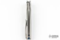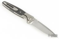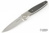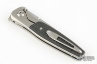 This Mini by Lee Williams features a hand rub satin finished drop point blade with false top edge and Kickstop flipper. The handle has an orange peel finished frame and a tip up titanium clip. Carbon fiber inlays. Nice detent, lockup and blade seating. Comes with a zipper case. Excellent Condition.