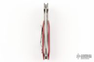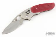 This Phoenix by Spyderco is a Howard Viele Design. The blade is satin finished with thumbhole opening. The handle has a titanium frame with red G-10 scales, stainless steel backspacer, and a tip up stainless steel clip. New condition. Comes with original box and papers. Still has plastic covers on the bolsters.