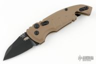 This A01 Microswitch model sports a FDE anodized aluminum handle and a 1.8" black wharncliffe blade.