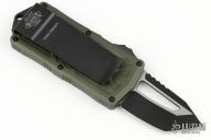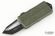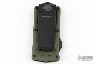 This Microtech Exocet features a black finished tanto blade. The handle has a green aluminum handle and a black stainless clip that doubles as a money clip dated 11/2020 S/N 14727. Comes with original box and papers. Has a couple small marks on the edges of the clip, otherwise excellent condition.