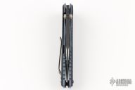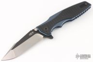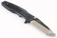 ZT's 0393 pairs an aggressive Rick Hinderer design with a solid Zero Tolerance build to create a substantial EDC folding knife. The 0393 sports a Hinderer Maximus inspired handle with a blue anodized titanium frame, carbon fiber overlays, comes with a set of black G-10 overlays as well. Its Spanto style blade is made from CPM-20CV steel in a two-tone finish with satin grinds and DLC flats. This knife is compatible with a selection of Hinderer custom hardware to make your knife stand out from the crowd. Features: KVT ball-bearing pivot for smooth and easy one-handed opening. Reversible pocket clip for secure left or right tip-up carry. 20CV Spanto blade provides excellent edge retention, superior hardness, and piercing power. #4292. Comes with original box and papers. Excellent condition.