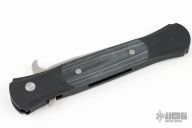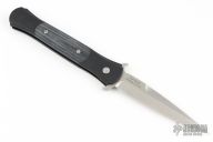 This Large Don by Pro-Tech features a satin finished hand ground blade with false top edge. The handle has a black aluminum handle, with G-10 inlays. Has a couple light scuffs, otherwise excellent condition. Prototype #15 of 20.