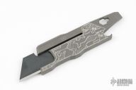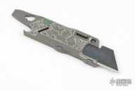 This TAD Gear/Rexford RUT (Rexford Utility Tool) uses a standard utility razor blade. Blade can easily be replaced. This piece features a functional lanyard hole, flat head screwdriver/pry tip, and bottle opener. The Triple Aught Design logo and topo graphic is laser etched into the titanium giving this piece a very unique look. Excellent Condition.