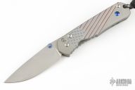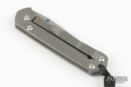 This small Sebenza by Chris Reeve Knives features a satin finish blade and titanium frame with unique graphic. Anodized titanium thumb stud and barrel spacer. Lanyard hole in pommel. Nice detent, lockup and blade seating. Scuffs and scratches are visible on the handle otherwise the knife is in good condition. The previous owner added a blue stone to the hole in the frame.
