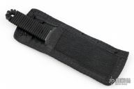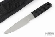 This knife by Sean McWilliams features a forged stainless steel blade with .102" blade stock and .625" blade depth, full hidden tang construction. The handle has a black micro cord wrap with lanyard hole at the butt. Comes with a black nylon sheath. Excellent condition.