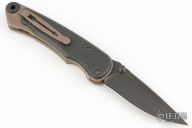 This Akribis linerlock folder by Spartan Blades features a black PVD finished drop point S35VN blade with dual thumb studs and a notched thumb rest. The handle has carbon fiber scales, sand PVD titanium liners, black G-10 backspacer and tip up sand PVD titanium clip. Has nice detent, lockup, and blade seating. Comes with original box, papers, and pouch. Excellent condition.