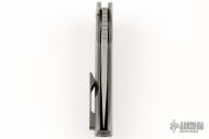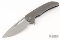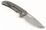 This Archbishop by Ferrum Forge features a tumbled drop point blade with thumb hole and flipper. The handle has a tumbled titanium frame with matching backspacer and tip up clip. Comes with original zipper case and card. Excellent condition.
