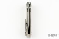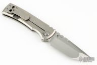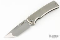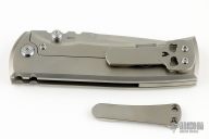 This Chaves Ultramar Liberation Drop point features a hand satin finished blade with the Chaves logo. The handle is made up of orange peel finished titanium, skull pocket clip (positioned for tip up carry), and a matching titanium backspacer. Comes with original box. Excellent condition.