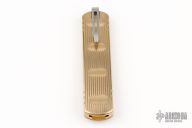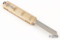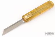 This Zulu Spear by Darriel Caston features a satin finished wharncliffe blade. The handle has an Ultem scale, aluminum bronze button/frame with stainless hardware and clip. Comes with original box. Excellent condition.