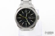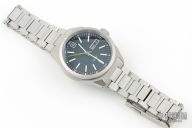 The automatic edition has a lightly textured dial, raised hour marking filled with Swiss Super-LumiNova® and printed day - date window.