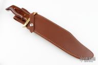 This limited edition Buck knife was made exclusively for Harley-Davidson Motor Company. It has a mirror polished blade with false top edge that has been etched, .179" blade stock and 2.074" blade depth, full tang construction with a brass guard and dymondwood scales. Comes with brown leather sheath, not original. Excellent condition.