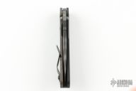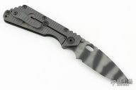 This Mick Strider Performance Series SMF framelock folder features a black finished spear point blade with thumbhole and notched thumbrest. The handle has a black aluminum and flamed titanium frame with titanium clip, tip up carry. Jimping on blade spine. Includes Hinderer "Lock Bar Stabilizer" for maximum reverse lock retention. Nice detent, lockup and blade seating. New condition.