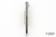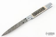 This Picklock Auto by Agasi Hambartsumian of Armenian Doctor Knives features a Damascus bayonet ground blade with a false top edge. The handle has a polished stainless steel frame with fileworked stainless steel backspacer, jigged bone scales with brass pins. New from maker.
