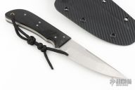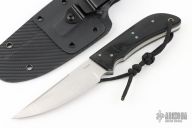 This knife by David Lancaster Clark features a hand rub satin finished blade with .127" blade stock and 1.225" blade depth, full tang construction with G-10 scales with white G-10 liners. Comes with a kydex sheath. New from maker.
