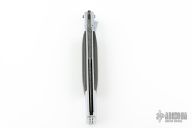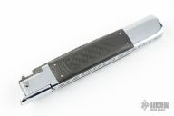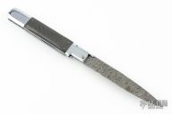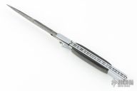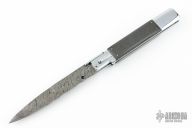 This Picklock Auto by Agasi Hambartsumian of Armenian Doctor Knives features a Damascus bayonet ground blade with a false top edge. The handle has a polished stainless steel frame with fileworked stainless steel backspacer, carbon fiber scales with brass pins. New from maker. Has some light oxidation on the blade.