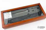 This Mark II by Gerber Knives is the 70th Anniversary Commemorative edition, it features a double edged satin finished wasp waisted blade with .229" blade stock and 1.102" blade depth, hidden tang construction. The handle has a black/grey aluminum handle. Comes with a black leather sheath and wooden display box. Has a chip in the blade edge. Excellent condition otherwise.