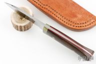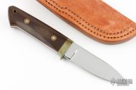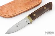 This Semi-Skinner by Wm C Yale features a mirror polished blade with .186" blade stock and 1.019" blade depth, full tapered tang construction. The handl ehas a brass guard and green canvas micarta scales with red liners. Comes with a brown leather sheath. Excellent condition.