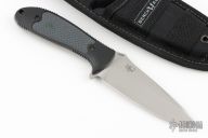 This 151 Griptilian Fixed Blade by Benchmade features a stonewashed blade with notched thumbrest, .122" blade stock and 1.477" blade depth, full tang construction. The handle has black FRN scales with gray rubber inserts. Comes with original nylon sheath, box and papers. Excellent condition.