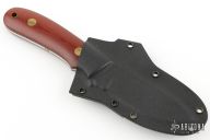 This K-2 General Purpose Knife by Dozier Knives features a satin finished blade with .138" blade stock and 1.060" blade depth, full tang construction. The handle has red linen micarta scales with brass pins and lanyard hole. Comes with kydex sheath with belt clip. Excellent condition.