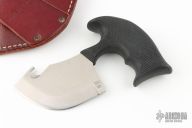The Outdoor Edge Game-Skinner Knife features a satin finished deep-belly gut hook blade with .158" blade stock and 2" blade depth, hidden tang construction. The handle has a black kraton grip. Comes with a brown leather sheath. Excellent condition.