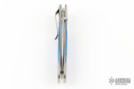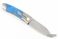 William Henry’s A200-8 expands on our tradition of fine folding knives with a design that has a little attitude, a lot of finesse, and remarkable utility in a compact and lightweight package. Each blade is crafted from S35VN stainless steel honed to a razor edge. The frame is hand-finished aircraft grade titanium inlaid with dyed blue maple burl. Finished with a stainless clip and stainless fittings.