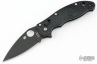 This axis-lock Manix 2 from Spyderco features a black, plain edged blade with SpyderHole and notched thumbrest. Textured black scales. Wire pocket clip is adjustable for ambidextrous left or right hand carry. Includes the original box and papers. Excellent condition.