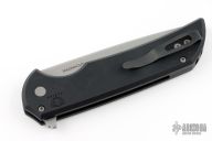 This Mordax by Pro-Tech is a Ferrum Forge design and features a stonewashed drop point blade. The handle has a black aluminum frame with black tip up stainless steel clip. Has some scuffs, otherwise good condition.