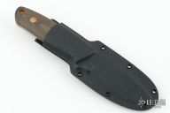This KS-1 Master Skinner from Dozier Knives features a satin finished blade with .158" blade stock and 1.162" blade depth, full tang construction. The handle has green linen micarta scales with brass pins and lanyard tube. Comes with a kydex sheath. Has a couple light scuffs, great condition otherwise.