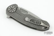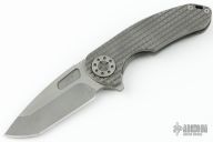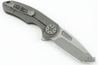 This F3 Medium by Curtiss Knives features a two-tone magnacut blade with a notched thumbrest. The handle has a bead blast finished frag-milled titanium frame over notched titanium backspacer, matching titanium tip up clip. Smooth and fast opening using a Caged Bearing System. Nice blade seating, detent and lock up. Includes a padded zippered case.  Excellent Condition.