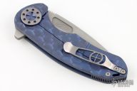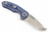 This F3 by Curtiss Knives features a satin finished Magnacut blade with notched thumbrest and flipper. The handle has a milled anodized titanium frame with a matching tip up titanium clip.  Rides on bearings, nice detent and lockup.  Comes with original box, zipper case and COA.  Excellent Condition.