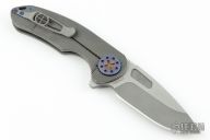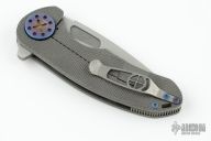 This F3 by Curtiss Knives features a two-tone Magnacut blade with notched thumbrest and flipper. The handle has a milled and bead blasted titanium frame with a matching tip up titanium clip.  Rides on bearings, nice detent and lockup.  Comes with original box, zipper case and COA.  Excellent Condition.