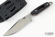 This Kitsune S by Work Tuff Gear features a satin finished blade with false top edge, .192" blade stock and 1.251" blade depth, full tang construction with black G-10 scales and red liners. Comes with original box, sheath and extras. Excellent condition. 1st Production dated 08/2023.