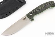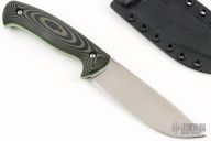 This Red Wolf by Work Tuff Gear features a satin finished blade with notched thumbrest, .178" blade stock and 1.354" blade depth, full tang construction with black/green G-10 scales with green liners. Comes with original box, sheath and extras. Excellent condition. Dated 10/2023.