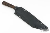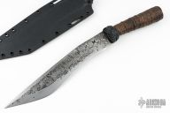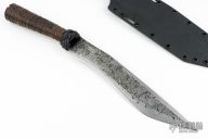 This Chopper by James Helm features a hand forged clip point recurve blade with false top edge, .231" blade stock and 1.782" blade depth, hidden tang construction. The handle has black/brown paracord/hemp wrap. Comes with a kydex sheath. Hollow handle. New from maker!