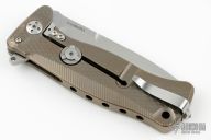 This SR11 by Lion Steel features a satin finished blade with flipper. The handle has a milled and anodized titanium integral frame with tip up reversible stainless steel clip, has Rotolock and a stainless lockface insert. Comes with a black leather sheath, original box and papers. Has a couple light scuffs, great condition otherwise.